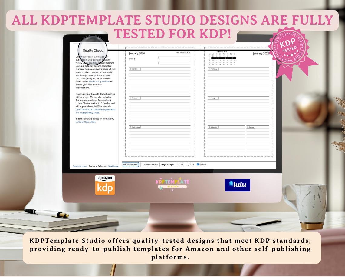 Also in this Guide is a page on editing in canva & printing in KDP Amazon. You will also receive links to the Canva Design School and the KDPTemplate Studio Customer HUB. If you are purchasing one of my newer interiors your Guide may include links to Canva videos.